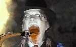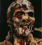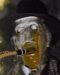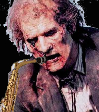 -Transbay Creative Music Calendar ¬€ Oct 2002 ¬€ 4 8/29/03 Edinburgh Castle - Tarantism, Murder Murder, Hans Grusel's Krankenkabinett Walk in, (guess it's free, no one is taking $$) someone says "welcome to the sauna" - shit is really hot... ...taking way too much time to setup (two beers-worth) next is Murder Murder, which includes Liz Albee [trum- pet], Marshall Trammell [drums], Zeek Sheck [screams], the drummer from Total Shutdown, and a few other amplified reeds and guitars and synths and things. Their set is a full-on free-noise-improv for fifteen minutes. About half of them take off their costumes [face masks] during this time. Theyˆïre makinˆï fun of both the free-jazz and the noise scenes ˆë pretty hilarious. Go down stairs to cool off and get another beer. Hey, itˆïs Ernesto and a bunch of other people from the 509 Cultural Center audience! Invite them upstairs [only a few come and none stay]. |